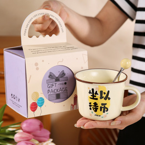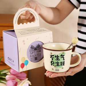 レトロな高価値家庭用ウォーターカップ女性の朝食カップかわいい漫画のコーヒーカップお土産セラミックマグ