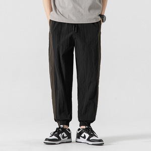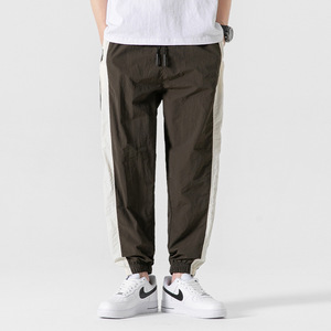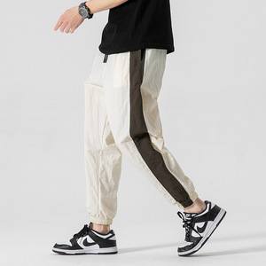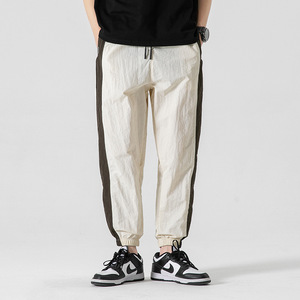 アイスシルクパンツ夏速乾アメリカンスプライシングストライプデザインストレートカジュアル薄手ルーズトレンディ多用途メンズパンツ