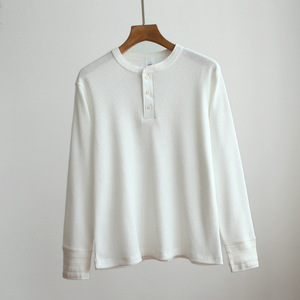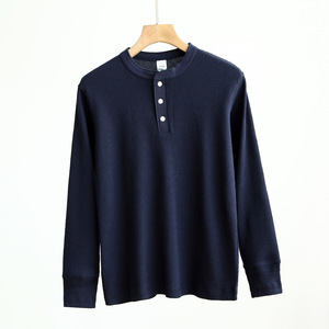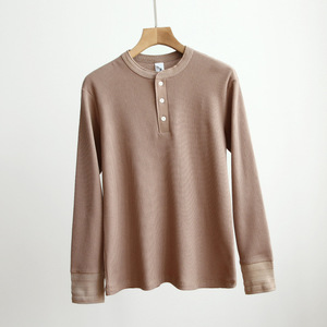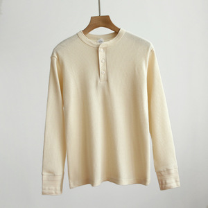 高重量ワッフル生地アメリカンヘンリーカラーメンズロングTファクトリーテールソリッドカラー万能ボトム長袖Tシャツ