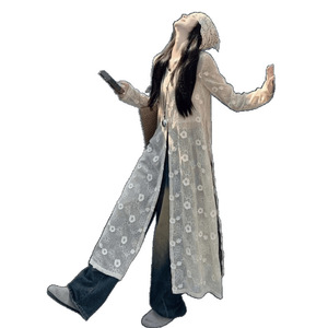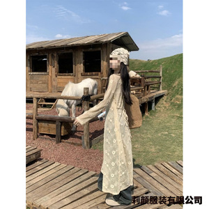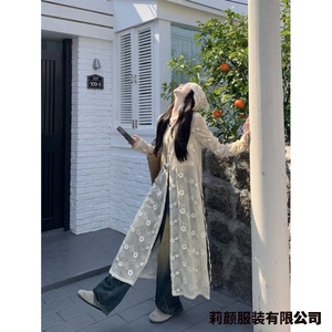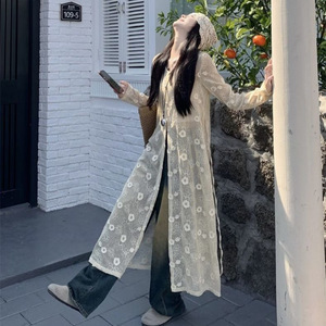 女性のためのロングメッシュホリデースタイル中空ブラウスドレス 2025 春夏フレンチスタイルロング日焼け止めシャツジャケット