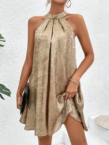 2025 クロスボーダーファッションエレガントなホルターネックゴールドショートドレス