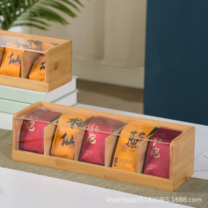 竹木アクリル茶包収納箱透明展示茶葉箱レストランホテル注文コーヒー小包箱