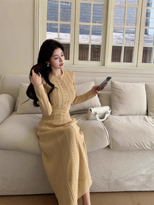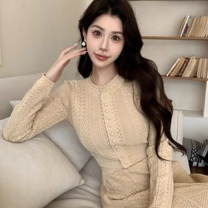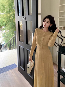 轻奢立体粘胶针织奶茶色优雅精致通勤上衣高腰半身长裙小香风套装