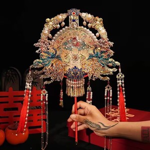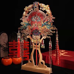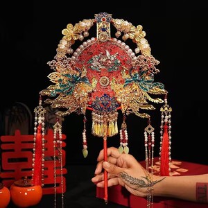 双面双色重工中式团扇新娘结婚喜扇diy材料包手工婚礼秀禾喜扇子