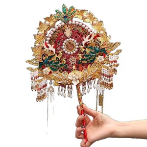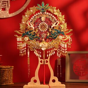 両面団扇新婦結婚式結婚高級完成品秀禾喜扇プレゼント中国式扇子diy材料バッグ