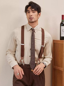 フレンチレトロストライプシャツメンズ春ドレープ英国ハンサムハイエンドシャツトレンディブランドジャケット男性用