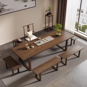 2.4米茶桌+主人椅+1.6米长凳+短凳*2