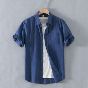 潮牌亜麻シャツ男性タイプの夏の薄いタイプのゆったりとしたカジュアルな麻の半袖シャツのファッションのごろつきのハンサムな綿の上着