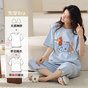 綿 100% カップル綿パジャマ女性の夏 2025 新しい漫画ダックスフント純粋な綿ルーズホーム服男性