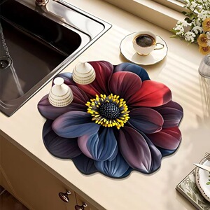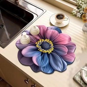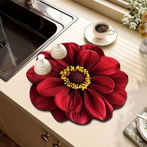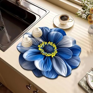新しい3d花の水たまりの台所のテーブルの食器の乾燥のマットのコースターの吸水のマットは洗濯しないでテーブルのマットを拭くことができます。