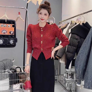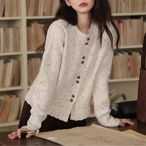小香风针织开衫上衣2025新款气质圆领毛衣女秋冬外套百搭短款女装