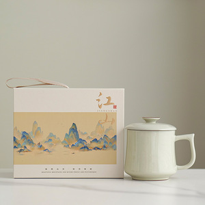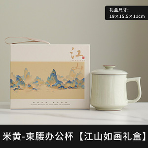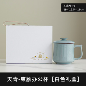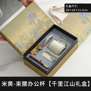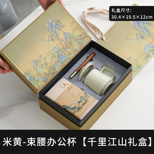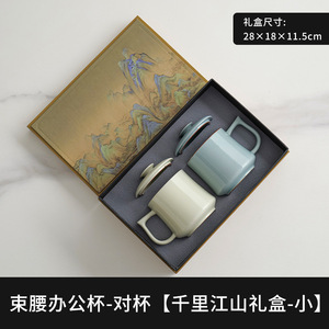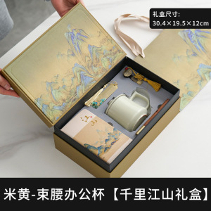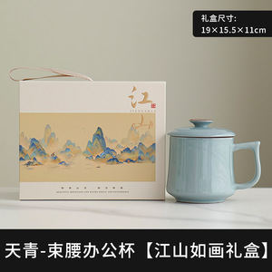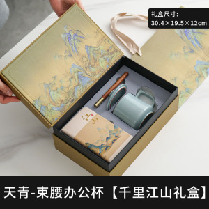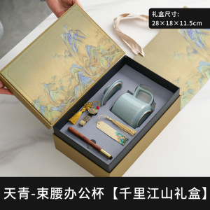 Tianqing Ru Kiln ウエストバンド オフィス カップ - プレーン スタイル + ペン + ブックマーク + U ディスク + Jiangshan Notebook [Qianli Jiangshan ギフト ボックス]