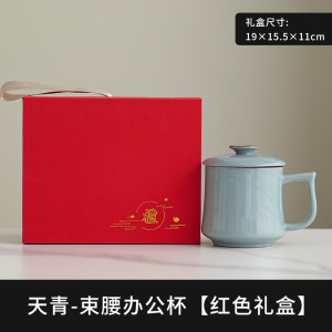 Tianqing Ru Kiln ウエストバンド オフィス カップ - プレーン スタイル [レッド ギフト ボックス]