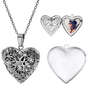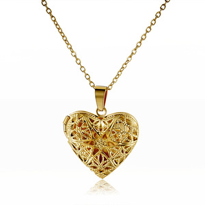 316L ステンレス鋼ペンダントクロスボーダーファッションスタイル中空六芒星開閉可能なハートピーチハートフォトボックス鎖骨ネックレス