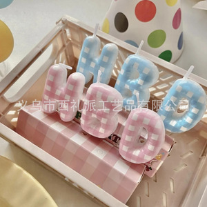 クロスボーダー Amazon 韓国 INS スタイル マカロン カラー プリント チェック柄 HBD レター バルーン 誕生日キャンドル