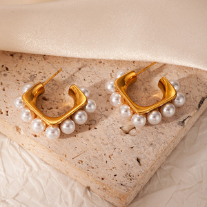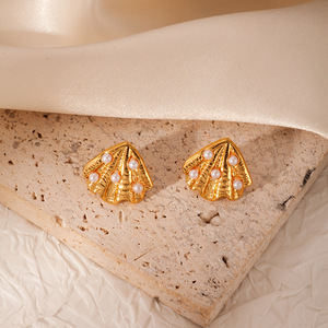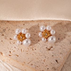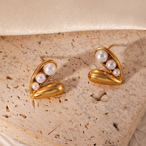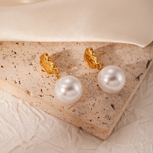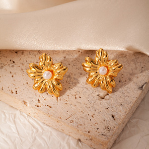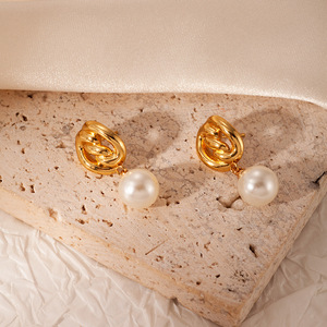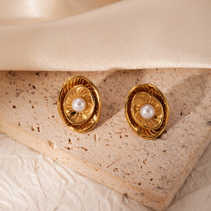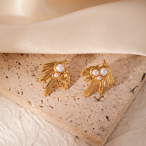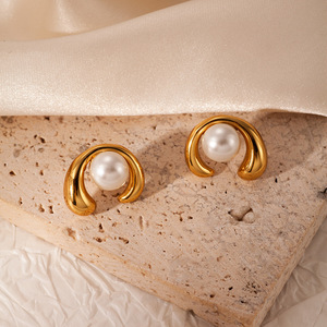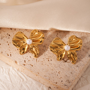 ステンレス鋼のイヤリング フレンチパールイヤリング リボンフラワー スイートバタフライイヤリング 半円形イヤリング チタン鋼イヤリング