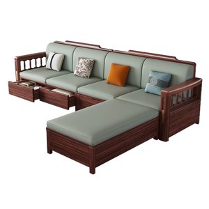 新しい中国風ウッディウッドソファ組み合わせ中国風リビングルーム冬と夏の使用長椅子ホーム引き出し収納ソファ