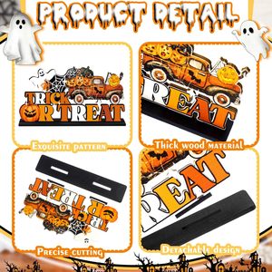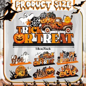 6 個ハッピーハロウィンテーブルデコレーションハロウィン木製センターピース装飾サインカボチャゴースト魔女デスクトップ