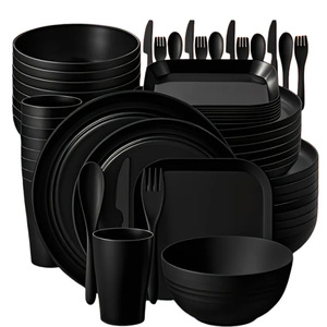 ブラック 8人用64点セット(プレート25枚+プレート20枚+角皿+ボウル15枚+腰カップ小+ナイフ、フォーク、スプーン)