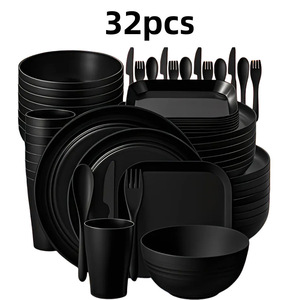 ブラック 4人用32点セット(プレート25枚+プレート20枚+角皿+ボウル15枚+腰カップ小+ナイフ、フォーク、スプーン)