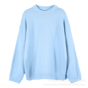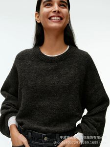 アメリカンスタイルの怠惰なソフトワックス状グレープルオーバーセーター女性のための 2025 秋と冬ルーズ厚みのあるカシミヤラウンドネックセーター