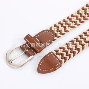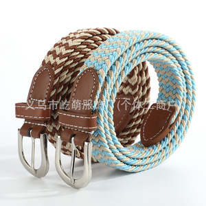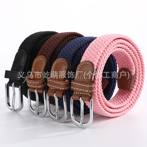 カスタマイズされたソリッドカラーの女性のキャンバスベルトカジュアル弾性織り学生ピンバックルベルトファッショナブルなシンプルな多用途ベルト