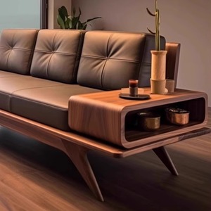 新しい中国風北米ブラックウォールナットリビングルームソファハイエンド無垢材レザー3人掛け小さなアパートストレートソファ