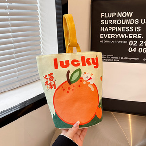 オリジナルイラスト ins ポータブルバケットバッグ ハンドバッグ お出かけおやつ キャンバスバッグ かわいいお出かけ 和風 小さめバッグ