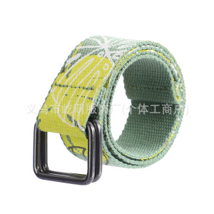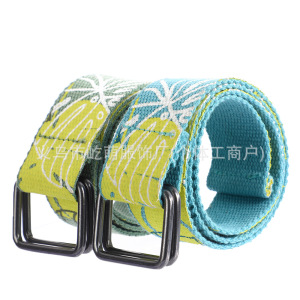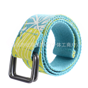 カスタマイズされたカラフルなプリント織りベルト、小さな新鮮な葉のプリント、男性と女性のための多用途ベルト、パンチングなしのベルト