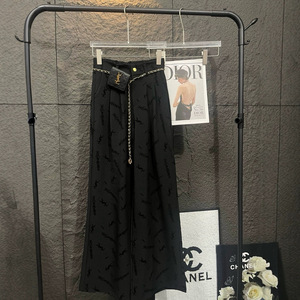 夏季2025新款高腰垂感满印logo宽松休闲直筒冰丝裤女ins潮裤