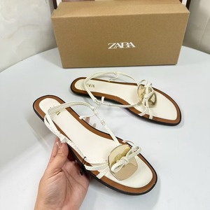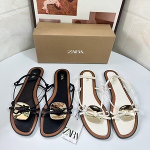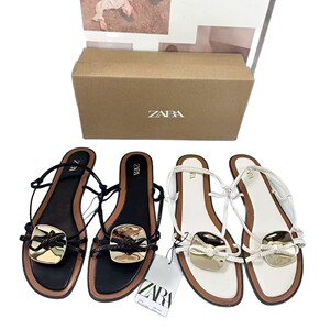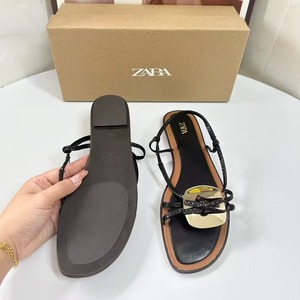 ZA2024夏季新品女鞋棕色金属装饰时尚流行细高跟凉鞋女细带组合女