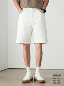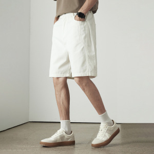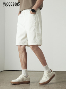 WOOG2005 ホワイトコットンメンズカジュアルショーツ 2025 夏新作ハイエンドストレート 5 点パンツ