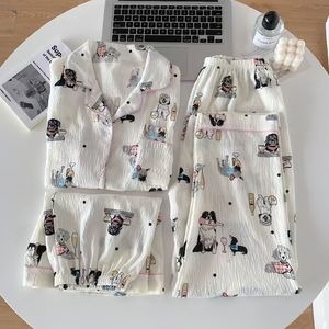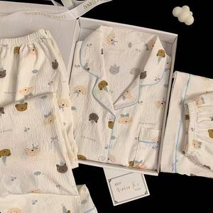 クロスボーダークラウド綿ガーゼパジャマ女性の夏半袖かわいい学生 2025 新しいホーム服 3 点セット