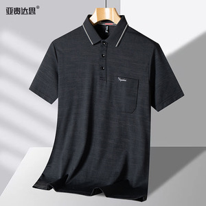 夏新作お父さん半袖Tシャツラペルポロシャツアイスシルクカジュアルポケット速乾おじいちゃんシャツストライプ