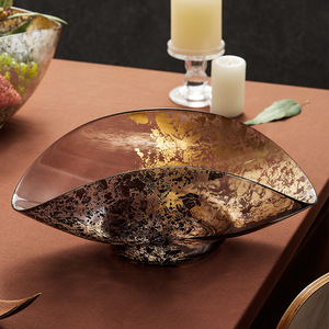 土耳其进口ARDACAM 金箔果斗欧式手工创意玻璃盘装饰食物水果盘子