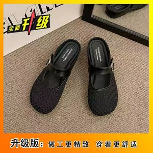 ネットセレブ中空スカートサンダル2025夏新作人気フラットメッシュハーフスリッパイン通気性つま先スリッパ