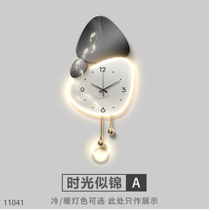 軽い豪華な客間の背景の壁の装飾画は時計の大きい白い壁の石を持って来て運行します。