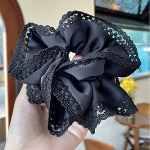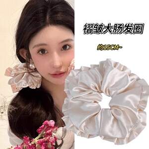 2#韓国風プリーツ特大大腸ヘアゴム-ブラック