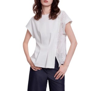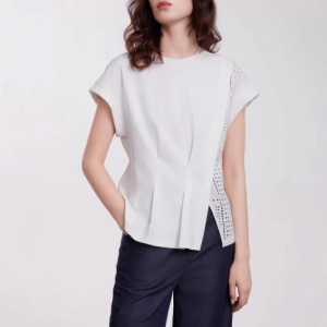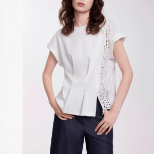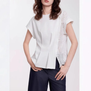 ELLE ホワイトデザインステッチ刺繍半袖レディース 2025 夏新作ピュアコットンシックなルーズカジュアル Tシャツ