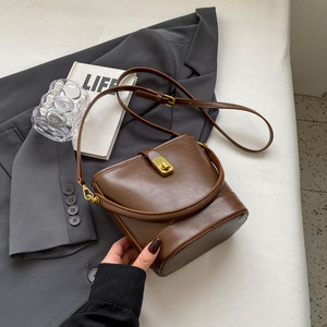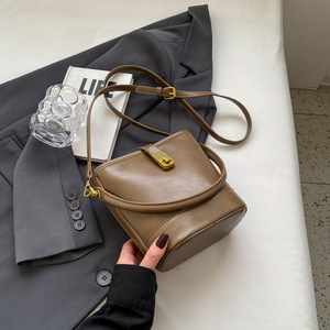高级质感复古小众包包女2025新款春夏季百搭斜挎包爆款手提水桶包