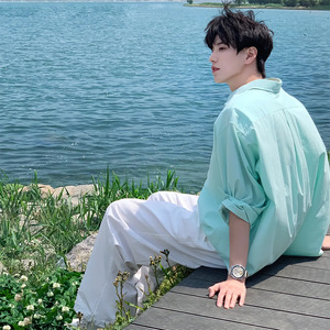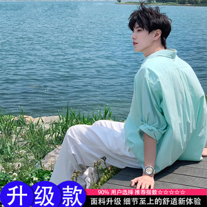 多巴胺薄荷曼波绿防晒衬衫男女夏季薄款防紫外线外套男生长袖衬衣