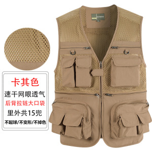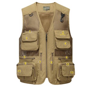 夏メッシュベスト薄型通気性作業服マルチポケットメンズアウトドア釣り写真広告ベストベストお父さん
