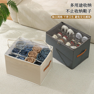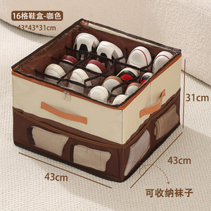 クロスボーダーファブリックシューズボックス大容量蓋付きコンパートメント収納ボックス折りたたみ寝室防塵防水靴収納ボックス