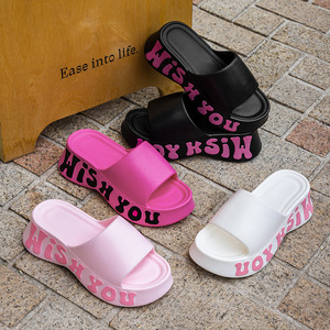 サイドに文字がプリントされたサンダル、厚底スリッパ、女性用夏のファッションアウターウェア、屋内外用、滑り止め