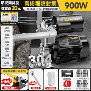 900W [ジャイアントシャーク高圧] ハイリフトジェットポンプ丨深井戸を数秒で汲み上げます - 防錆アップグレード [極厚 304 ステンレス鋼ポンプボディ] 不凍液、日焼け防止、亀裂防止