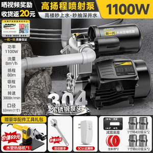 1100W [ジャイアントシャーク高圧] ハイリフトジェットポンプ丨深井戸を数秒で汲み上げます - 防錆アップグレード [極厚 304 ステンレス鋼ポンプボディ] 不凍液、日焼け防止、亀裂防止