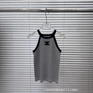 25 夏の新しいニッチシックな凱旋門ロゴ細ストライプニットベスト女性用
