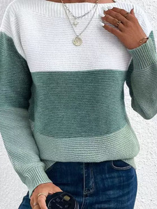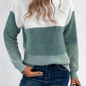 2025 新しいセーターカラーブロックアマゾンクロスボーダー婦人服人気ニット春と秋のセーターストライプトップ