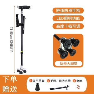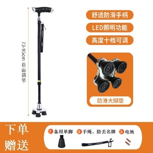 乐福アルミ合金製高齢者用軽量四脚杖、滑り止め付き伸縮式杖、ライト付き杖、メーカー卸売