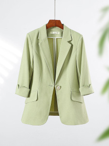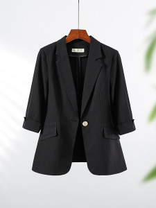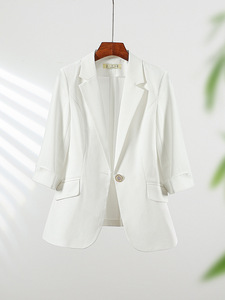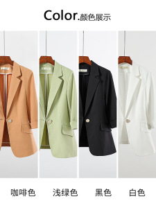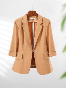オレンジ薄型小さなブレザー女性のための夏 2025 新しい女神スタイルカジュアルスリム七分袖スーツトップ